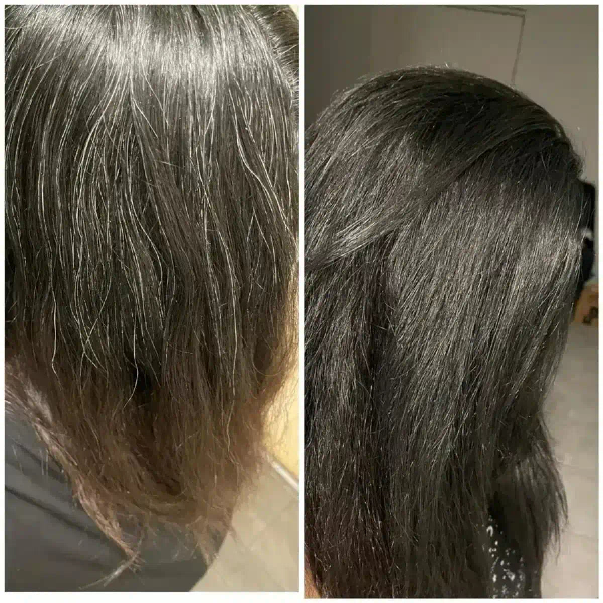 Black Hair Dye™️ está diseñado para restaurar la fibra capilar dañada por tintes o químicos anteriores.